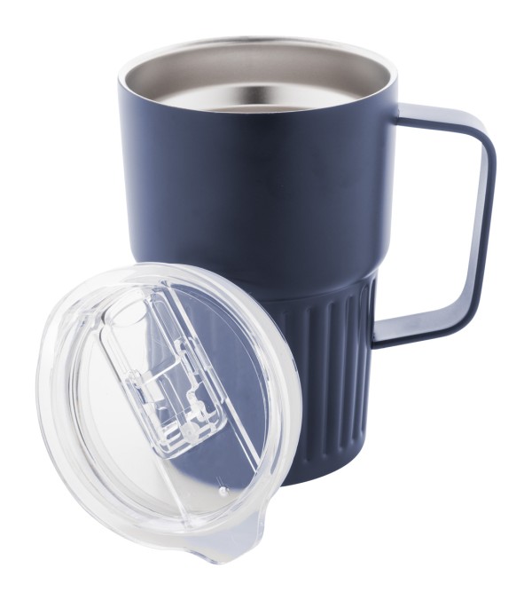 Cană termoizolată, din oțel inoxidabil reciclat, cu perete dublu, cu capac pentru băut din plastic ABS. 470 ml.