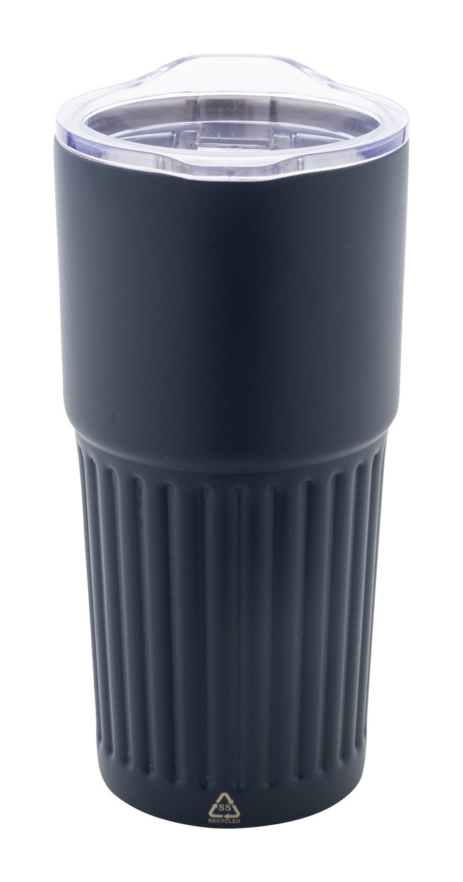 Cană termoizolată din oțel inoxidabil reciclat, cu perete dublu, cu capac pentru băut din plastic ABS. 600 ml.