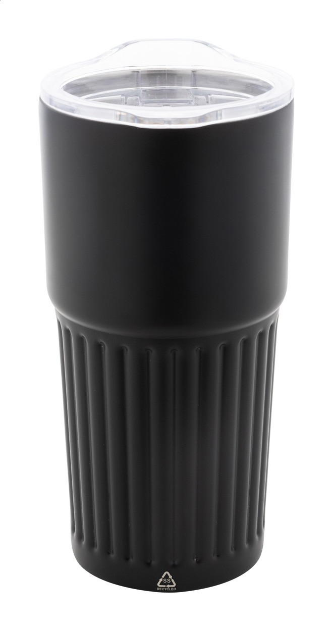 Cană termoizolată din oțel inoxidabil reciclat, cu perete dublu, cu capac pentru băut din plastic ABS. 600 ml.