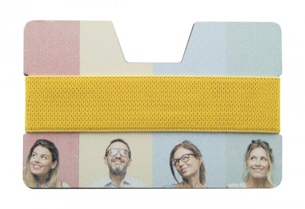 Suport din lemn HDF pentru cărți de vizită, cu elastic. Ideal pentru personalizare cu UV Led.