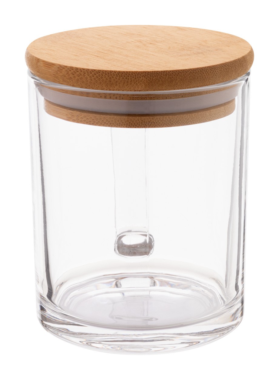 Cană din sticlă reciclată, cu capac din bambus, 300 ml. În cutie de hârtie kraft.