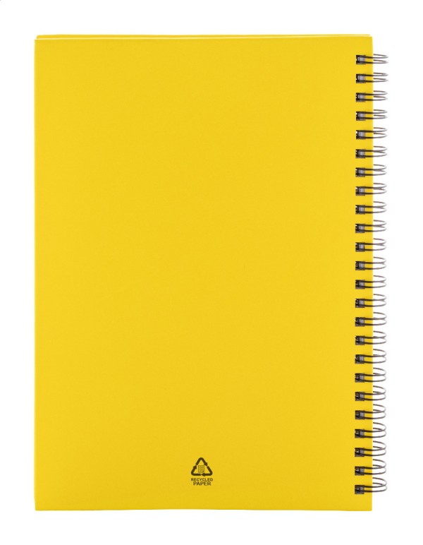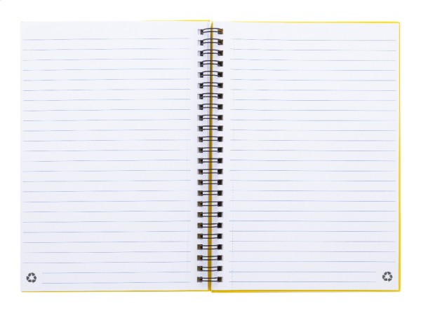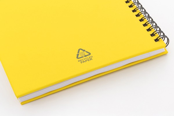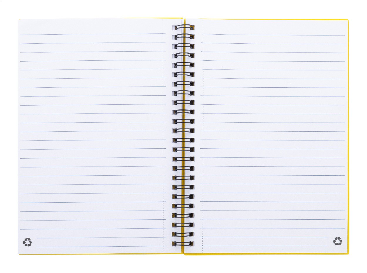 Caiet spiralat, cu copertă din hârtie reciclată, cu 80 de foi dictando, din hârtie reciclată. Dimensiune A5.