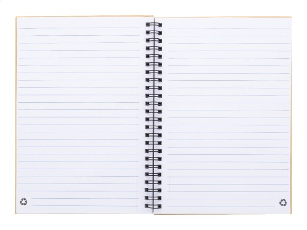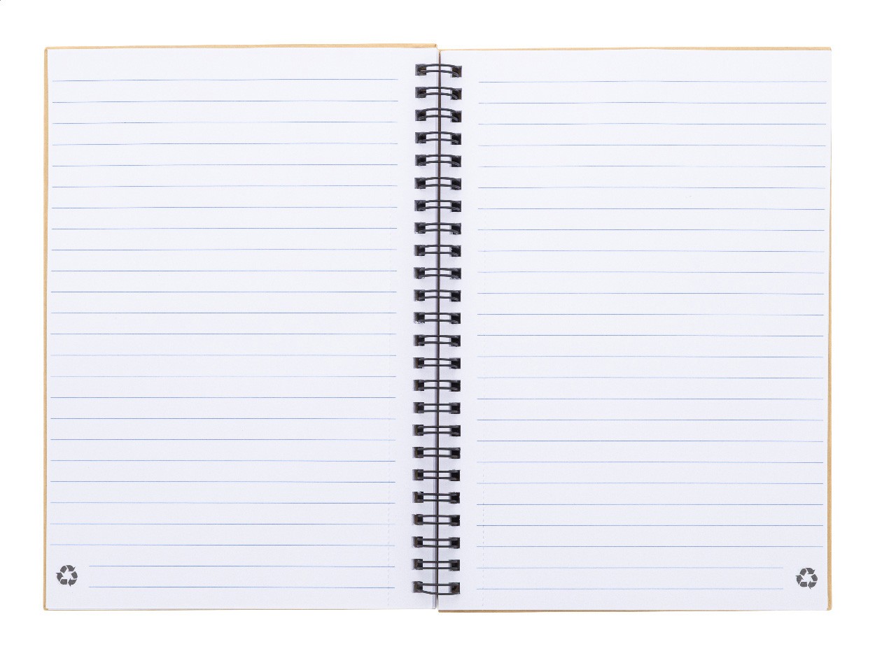 Caiet spiralat, cu copertă din hârtie reciclată, cu 80 de foi dictando, din hârtie reciclată. Dimensiune A5.