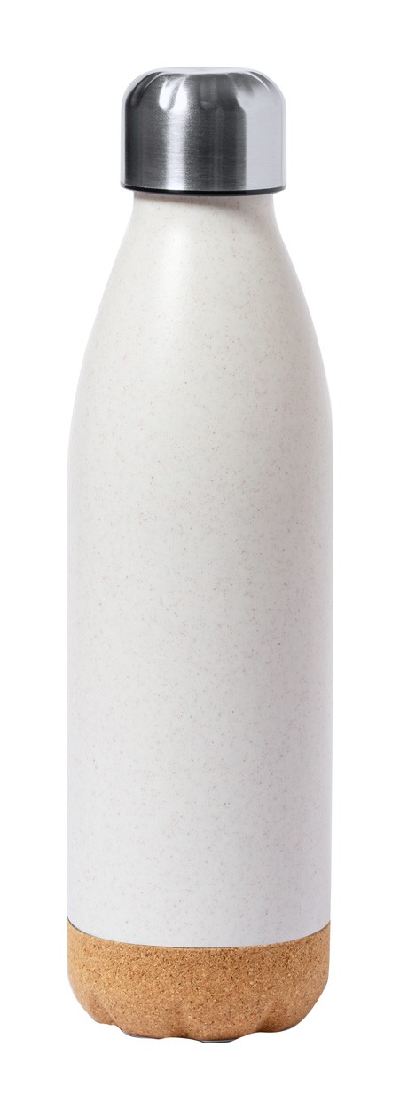 Sticlă din plastic PE, cu baza din plută naturală și capac din oțel inoxidabil, 650 ml.