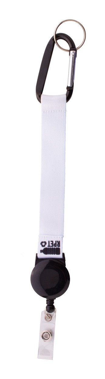 Breloc personalizat, din poliester RPET, cu grafică imprimată prin sublimare pe ambele părți. Cu etichetă interioară RPET, suport telescopic, carabină din aluminiu și breloc metalic. MOQ: 100 buc.