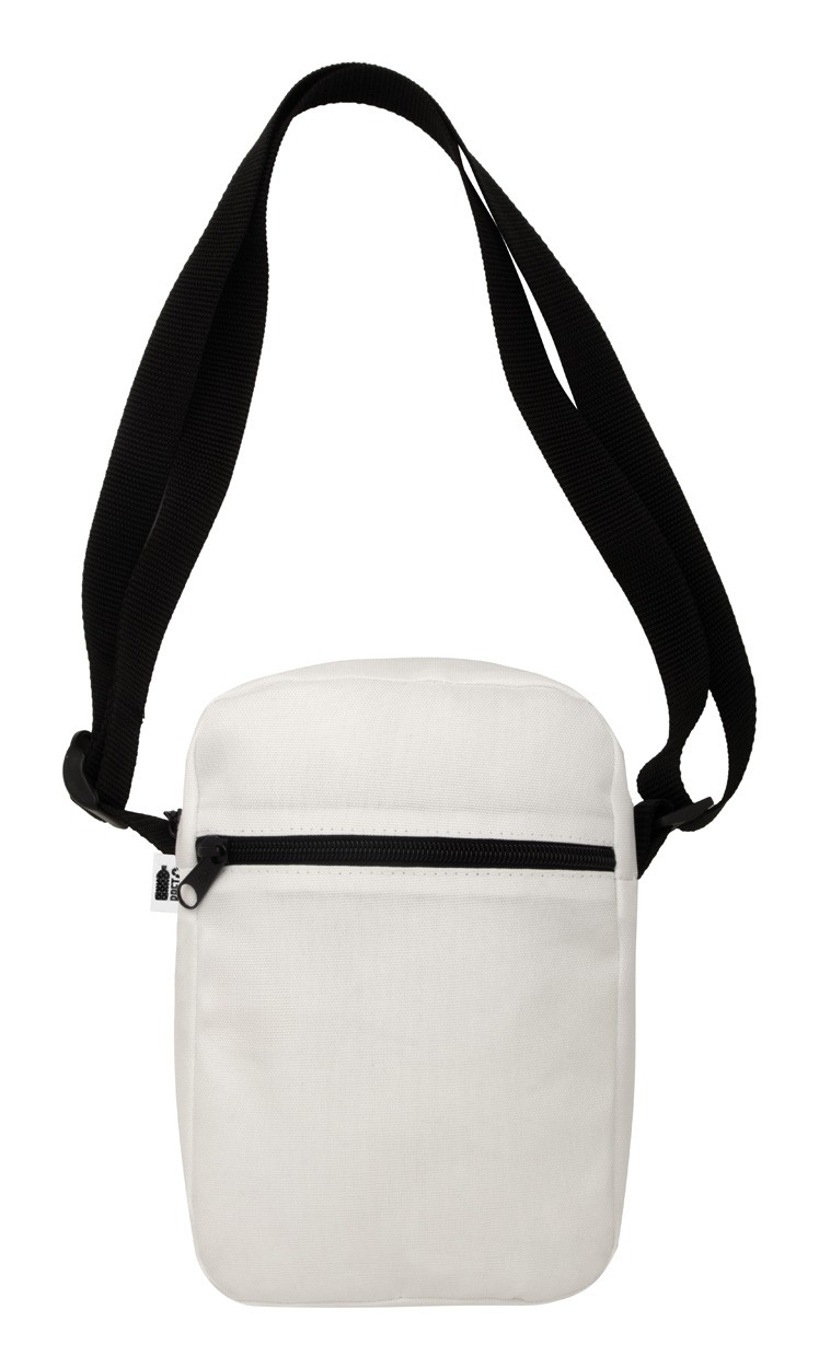 Geantă verticală, personalizată, din poliester 600D RPET, cu compartiment cu fermoar și buzunar frontal. Cu grafică imprimată prin sublimare și etichetă RPET distinctivă. MOQ: 25 buc.