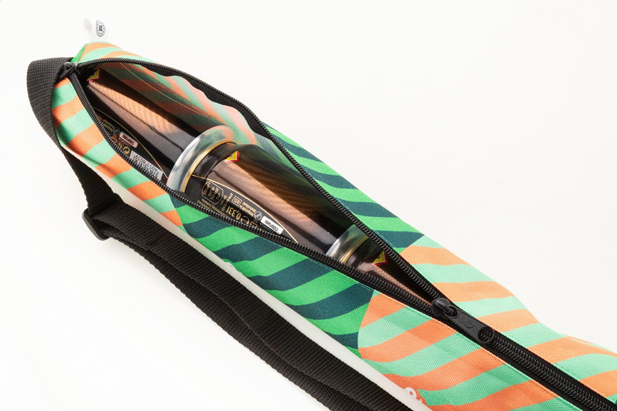 Geantă pentru doze, realizată la comandă, din poliester RPET 600D, cu compartiment cu fermoar și curea de umăr reglabilă. Cu grafică imprimată prin sublimare pe toată suprafața și etichetă distinctivă RPET. Potrivită pentru 5 doze standard de aluminiu de 0,33 l. MOQ: 25 buc.
