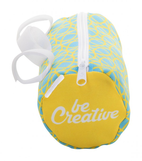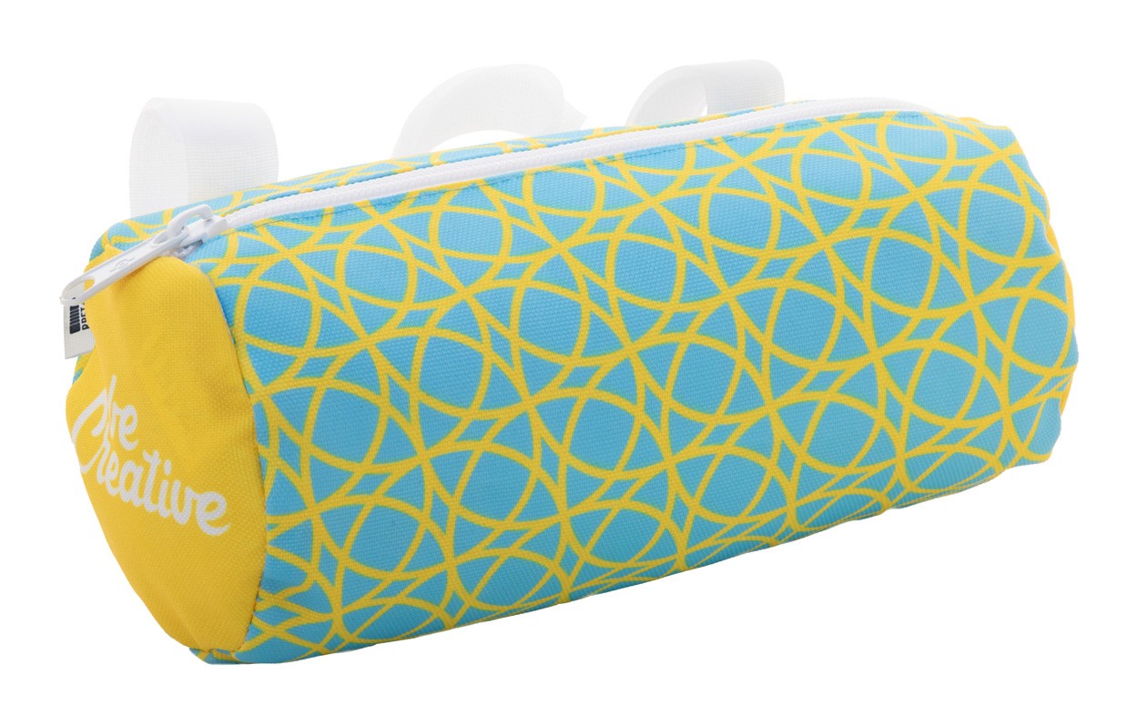 Geantă pentru ghidon de bicicletă, realizată la comandă, cu fermoar, din poliester 600D RPET, cu curele velcro reglabile. Cu grafică imprimată prin sublimare integrală ?i etichetă distinctivă RPET. MOQ: 25 buc.