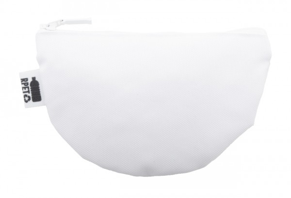 Poșetă personalizată, în formă de jumătate de cerc, cu fermoar, din poliester 600D RPET. Cu etichetă RPET distinctivă și grafică imprimată prin sublimare. MOQ: 50 buc.