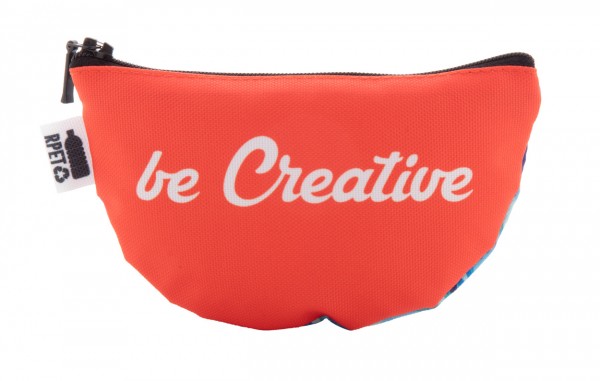 Poșetă personalizată, în formă de jumătate de cerc, cu fermoar, din poliester 600D RPET. Cu etichetă RPET distinctivă și grafică imprimată prin sublimare. MOQ: 50 buc.