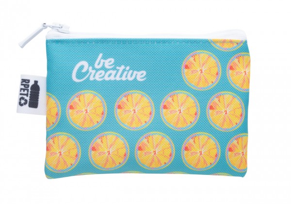 Geantă personalizată, cu fermoar protejată prin RFID, din poliester 600D RPET. Cu etichetă RPET distinctivă și grafică imprimată prin sublimare. MOQ: 50 buc.