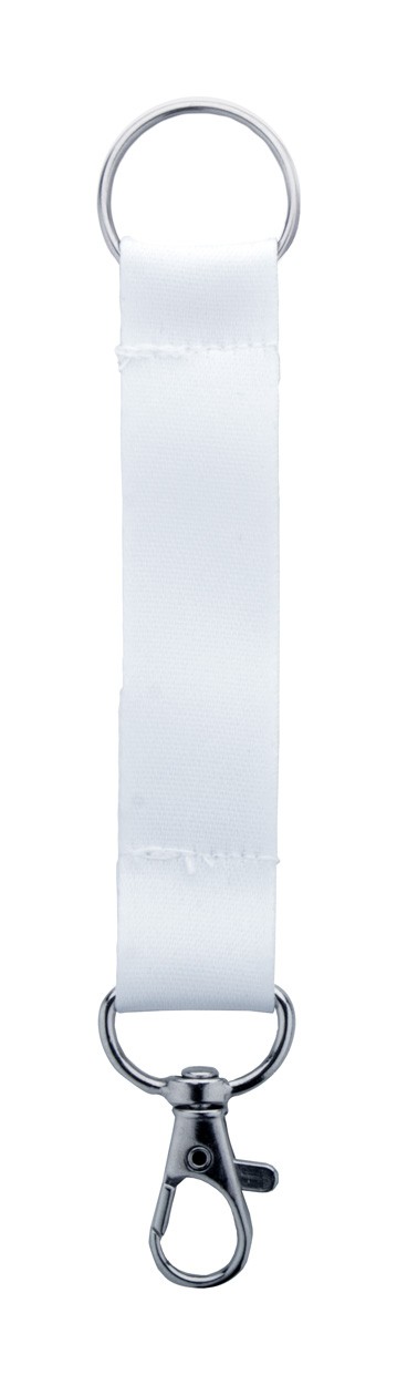 Mini breloc din poliester RPET, realizat la comandă, cu grafică imprimată prin sublimare pe ambele părți. Cu carabină metalică și inel. MOQ: 100 buc.