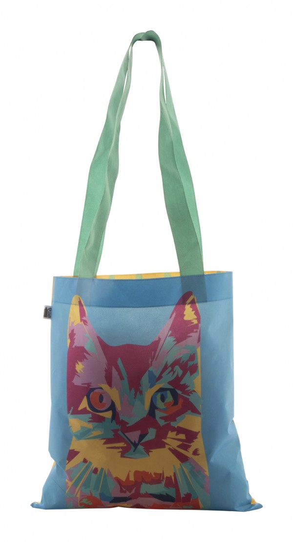 Geanta de cumparaturi din material netesut RPET, cu manere lungi, 80 g / m². Cu sublimare. Cantitate minima de comanda 25 buc.