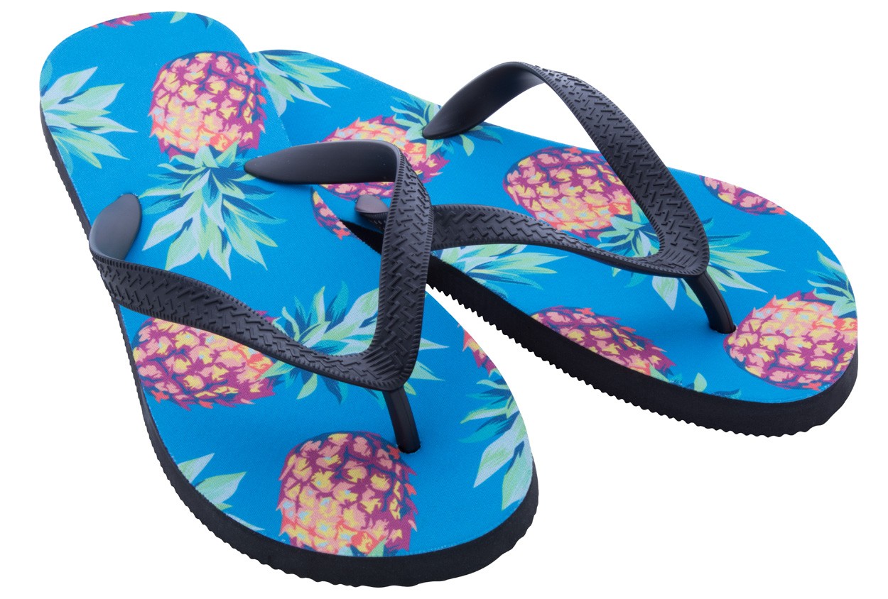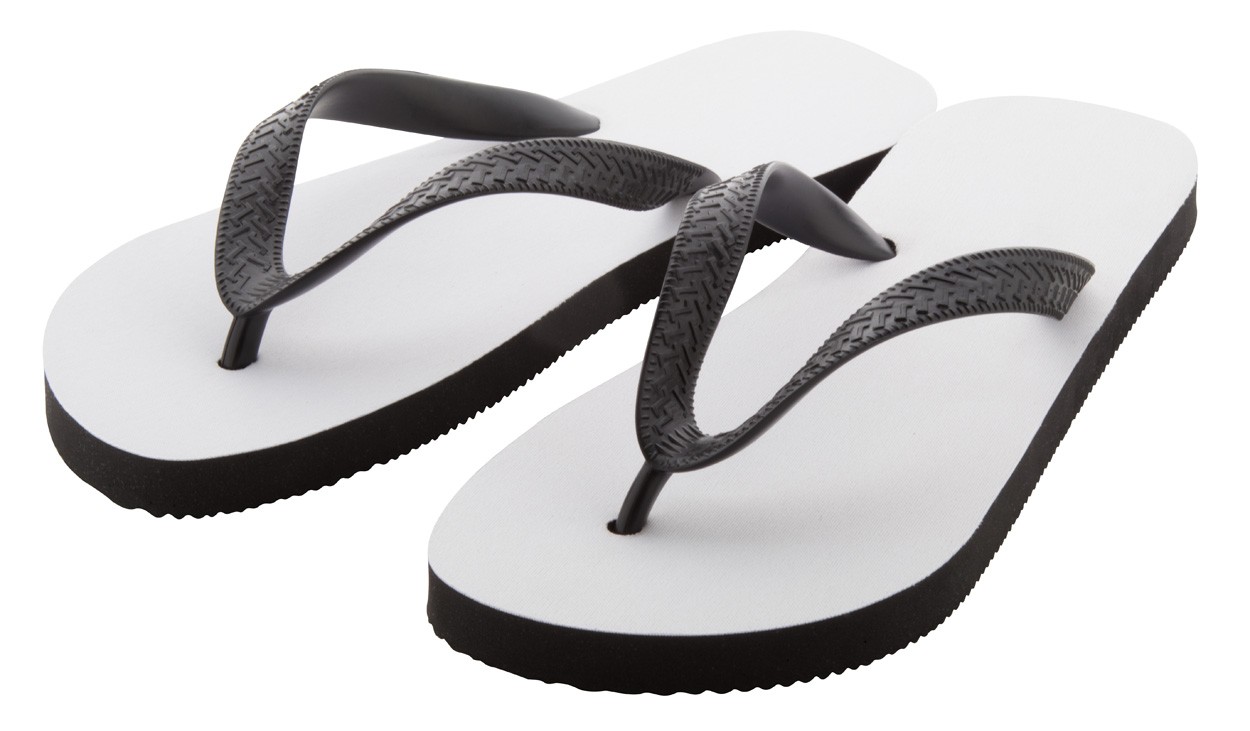 Papuci de plajă unisex cu sublimare, bretele din PVC. Prețul include sublimarea. Cantitate minimă de comandă: 50 buc.