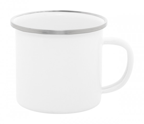 Cană vintage din metal emailat cu margine din otel inoxidabil, pentru imprimare prin sublimare, 500 ml. În cutie de hârtie albă. Nu se comercializează în Franța.