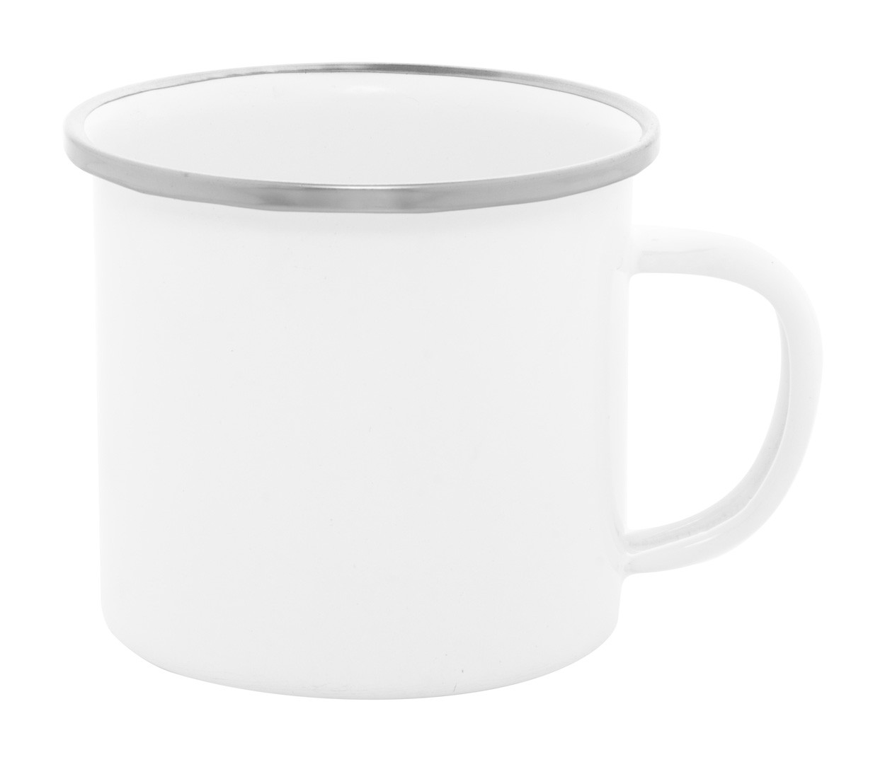Cană vintage din metal emailat cu margine din otel inoxidabil, pentru imprimare prin sublimare, 200 ml. În cutie de hârtie albă. Nu se comercializează în Franța.