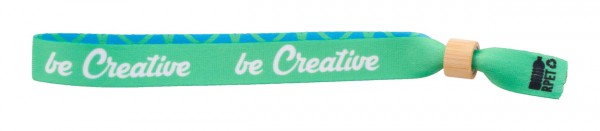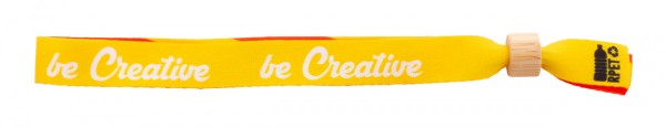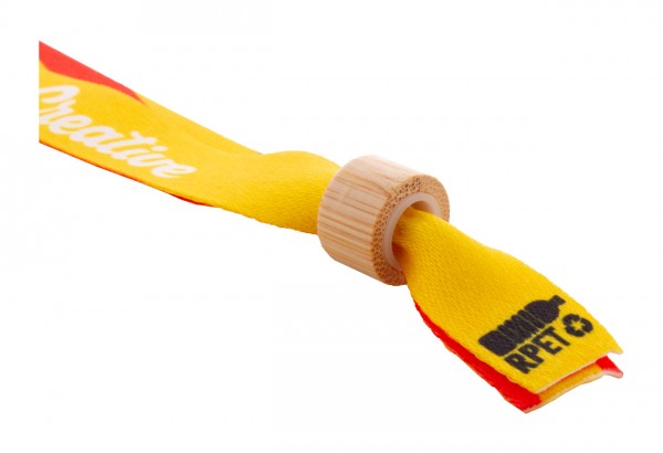 Brățară de festival, din poliester RPET, realizată la comandă, cu încuietoare de siguranță din bambus. Cu grafică imprimată prin sublimare pe ambele fețe. MOQ: 100 buc.