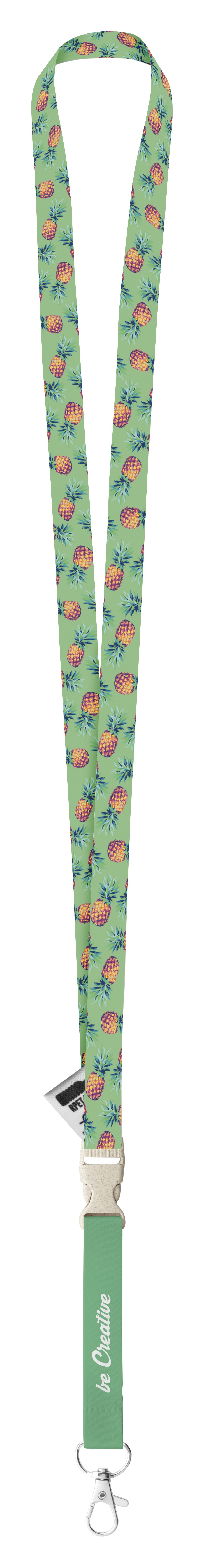 Lanyard personalizat, 15 mm lătime, din poliester, cu carabină metalică detașabilă și cataramă de siguranță din plastic. Cu sublimare pe ambele fețe. Cantitate minimă de comandă 100 buc.