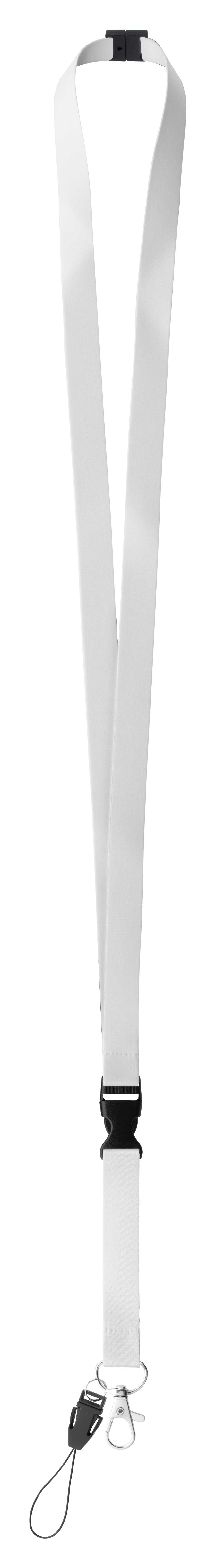 Lanyard din poliester de 15 mm lățime, cu carabină metalică detașabilă, șnur pentru telefon mobil și cataramă de siguranță. Prețul include personalizarea cu sublimare pe ambele fețe. Cantitate minimă de comandă: 100 buc.