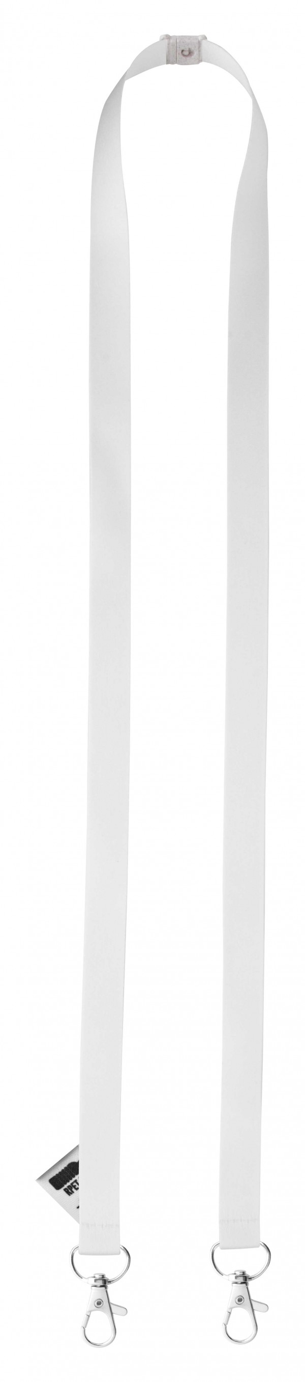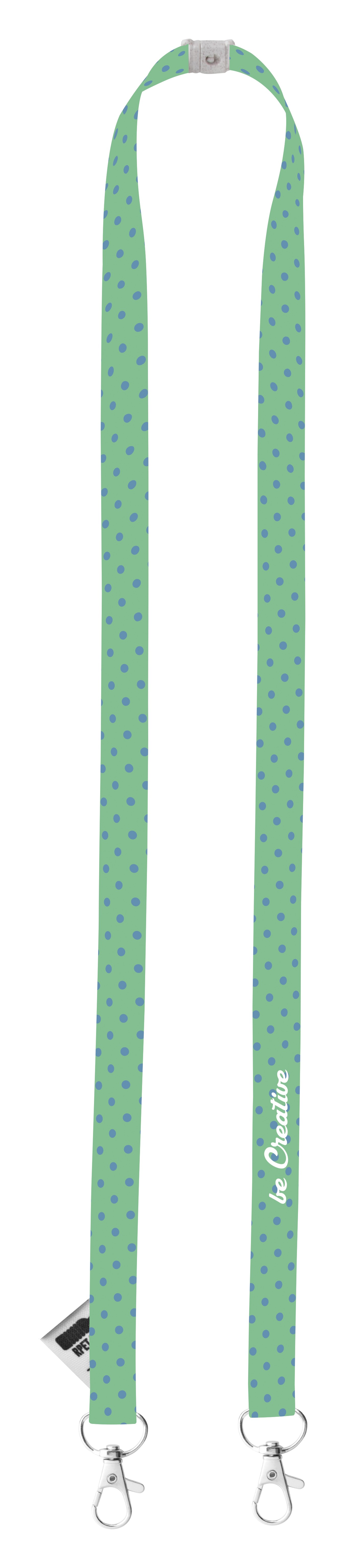 Lanyard personalizat, 15 mm lătime, din poliester, cu două carabine metalice și cataramă de siguranță din plastic. Cu sublimare pe ambele fețe. Cantitate minimă de comandă 100 buc.