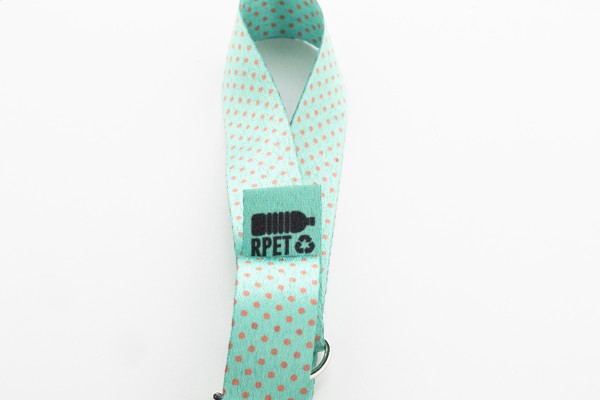 Lanyard cu suport de telefon mobil, din RPET, realizat la comandă, cu carabină metalică, cataramă de siguranță și inserție de telefon din hârtie rezistentă la rupere. Grafică imprimată prin sublimare pe ambele părți. MOQ: 100 buc.