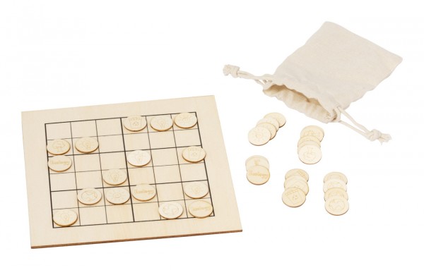 Joc de îndemânare, din lemn, de 36 buc, în husă de bumbac.