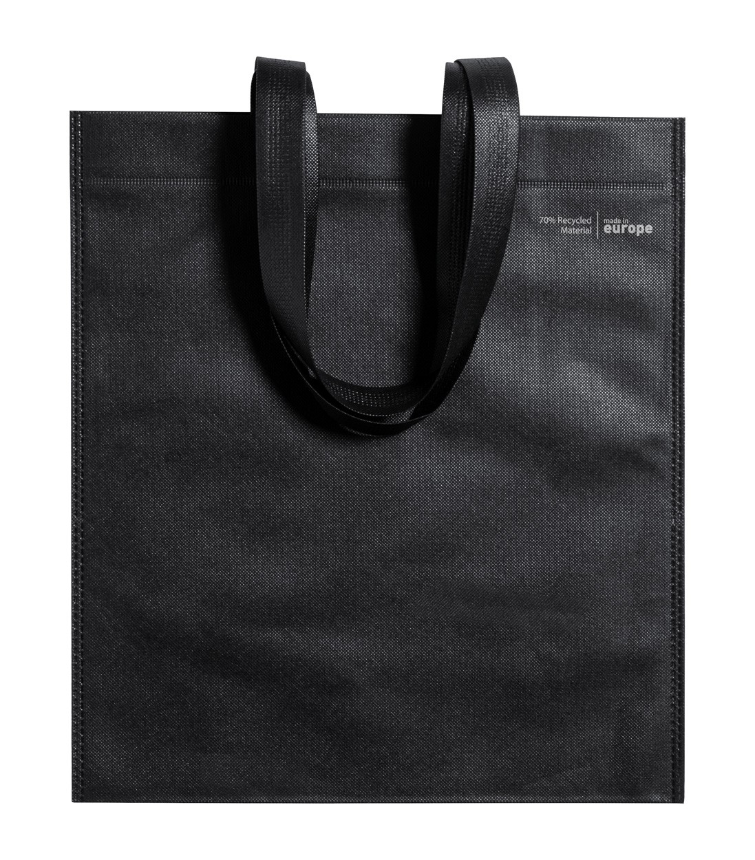 Sacoșă de cumpărături, din material nețesut, cu mânere lungi și finisaj termosigilat, 70 g/m². Fabricat din material 70% reciclat.