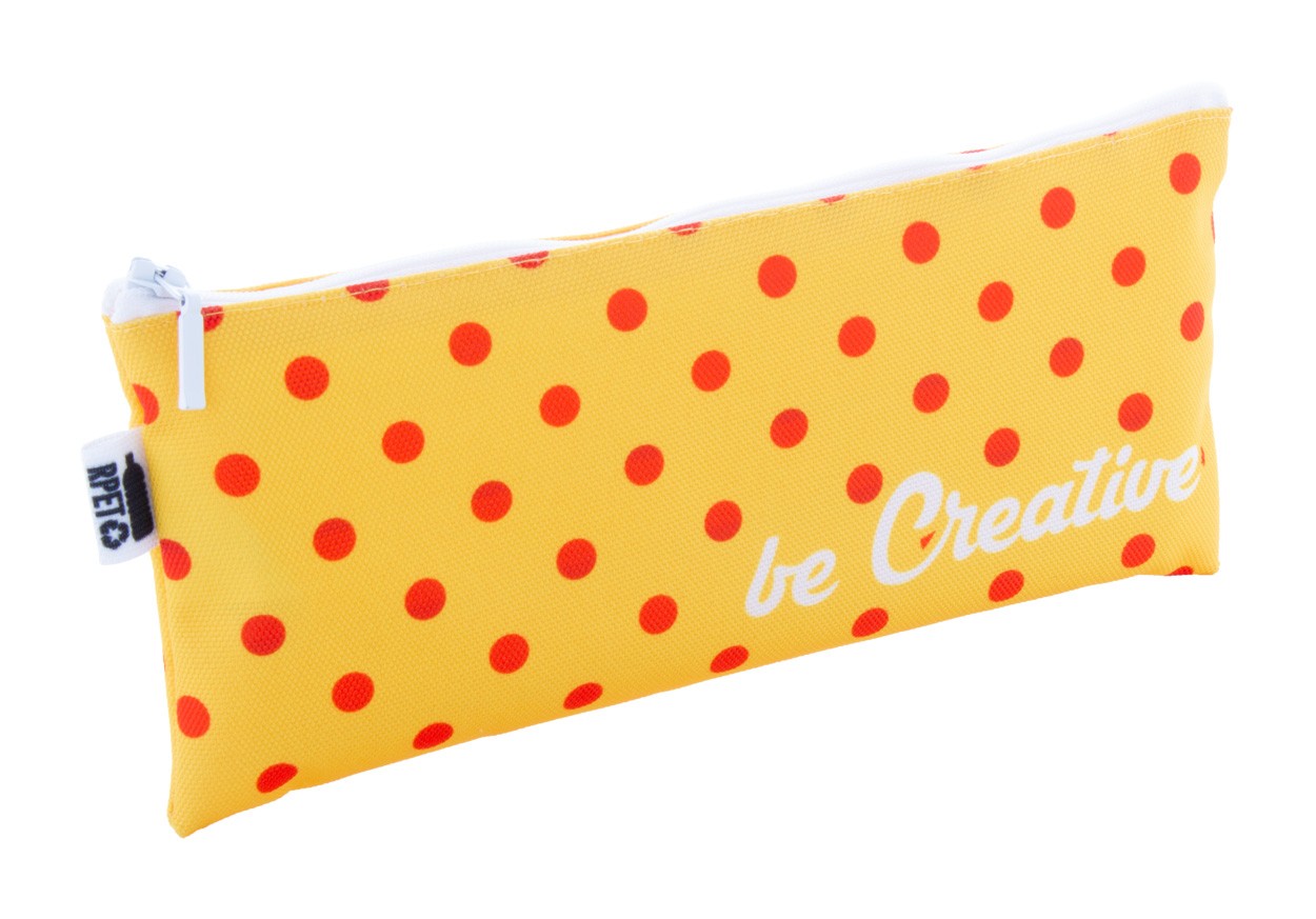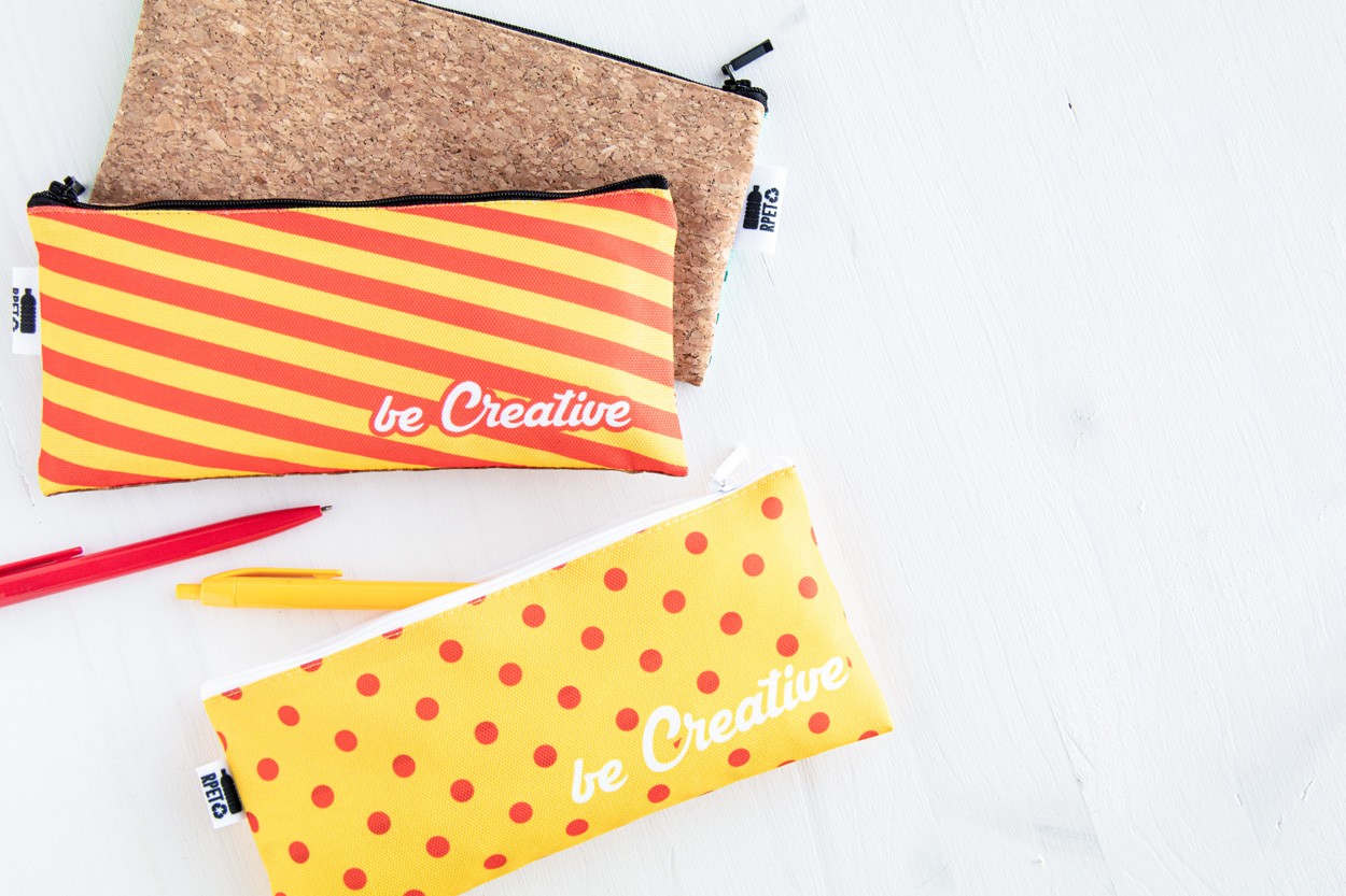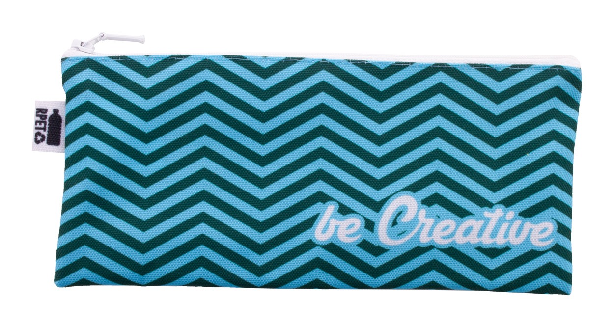 Husă pentru stilouri, cu fermoar, realizată la comandă, din poliester 600D RPET. Cu grafică imprimată prin sublimare și etichetă RPET distinctivă. MOQ: 50 buc.