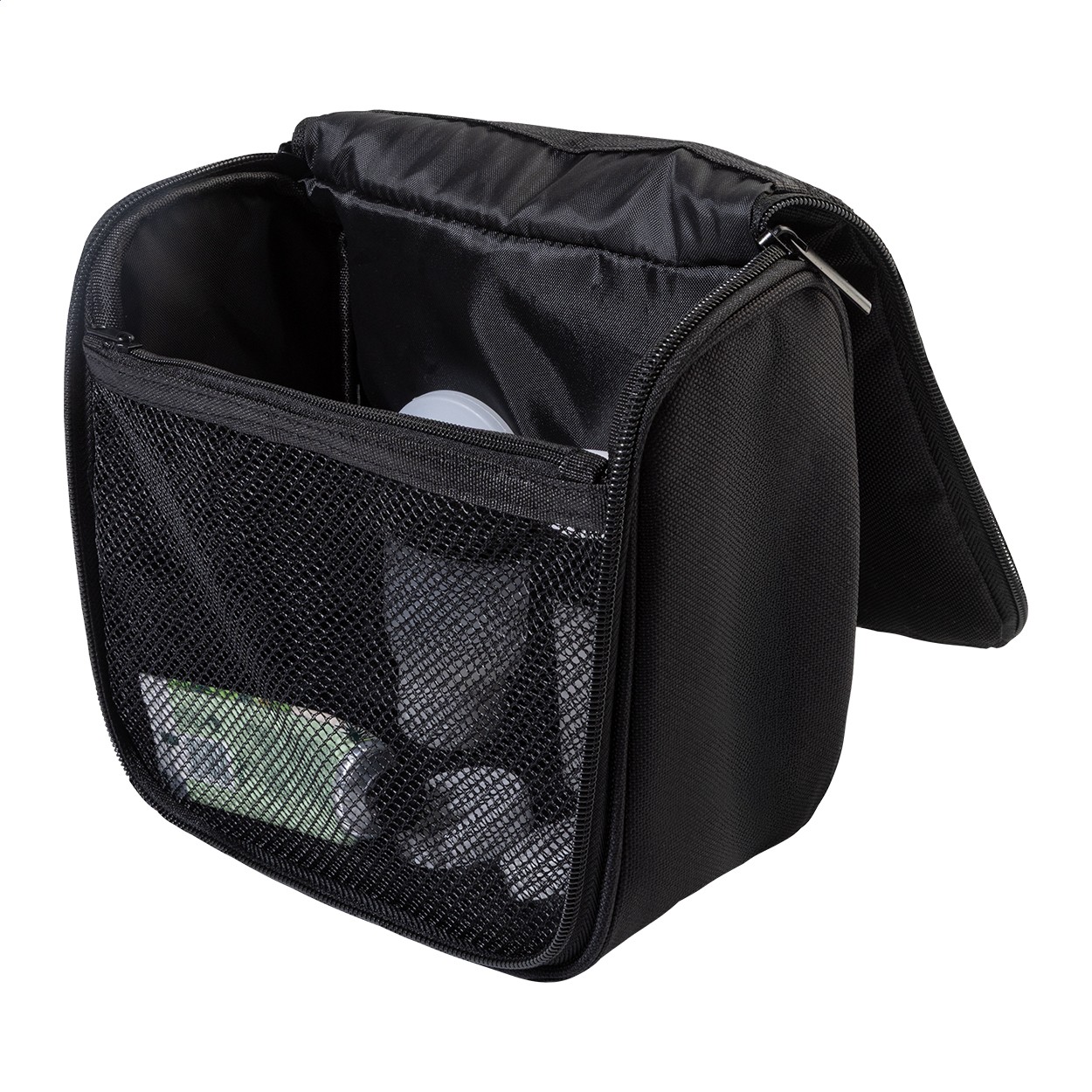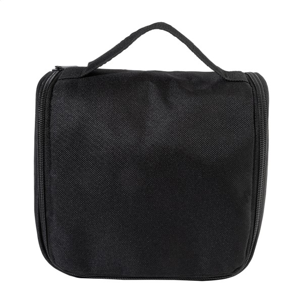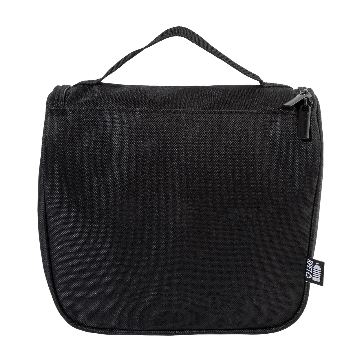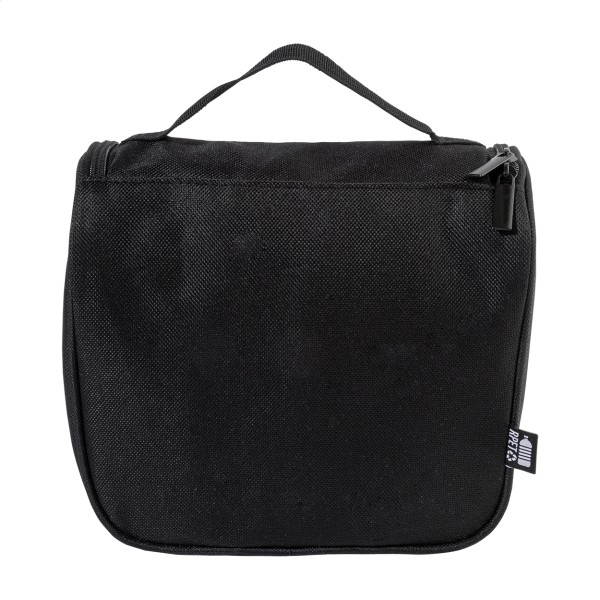 Geantă pentru cosmetice, RPET, cu cârlig de agățat, cu compartimente interioare cu fermoar și buzunare din plasă. Poliester RPET 600D, cu etichetă RPET distinctivă.