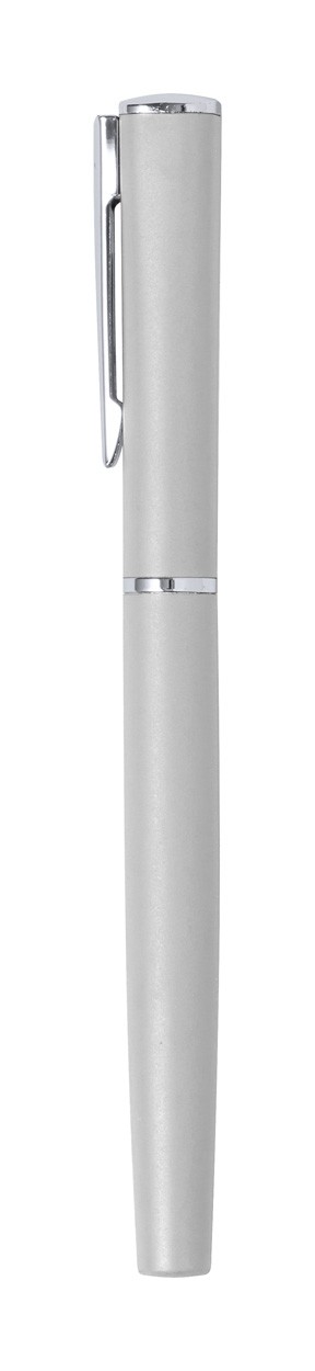 Pix cu rolă, din aluminiu, cu capac și mină albastră.
