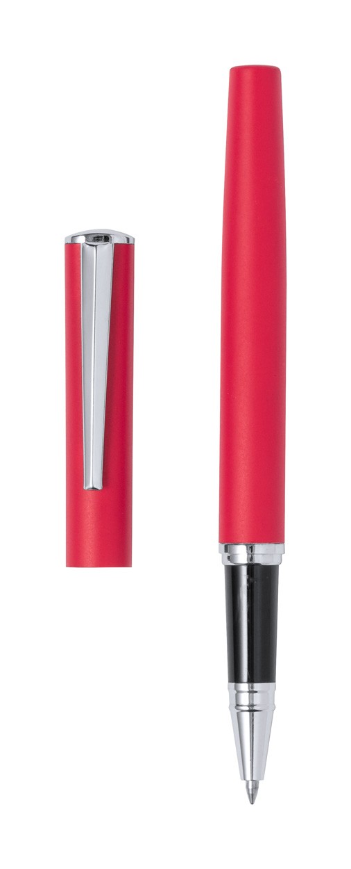 Pix cu rolă, din aluminiu, cu capac și mină albastră.