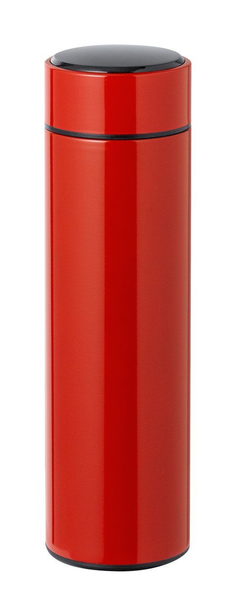 Termos din oțel inoxidabil, cu perete dublu, cu infuzor de ceai și termometru tactil LED pe capac. 450 ml. Cu baterie tip buton.