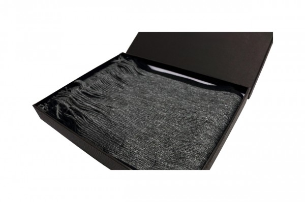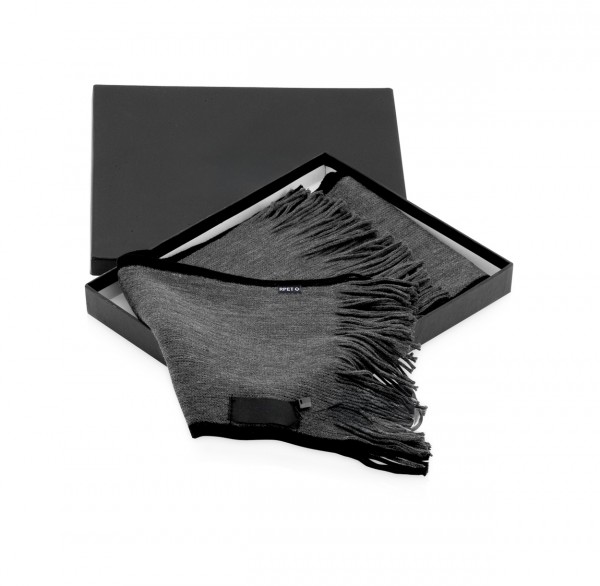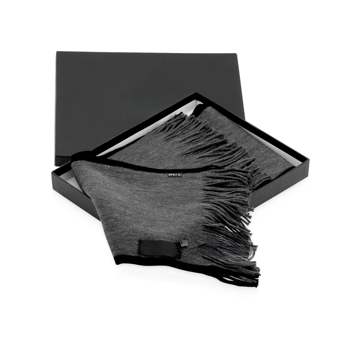 Eșarfă elegantă, din poliester RPET. În cutie cadou neagră. Cu etichetă distinctivă RPET.