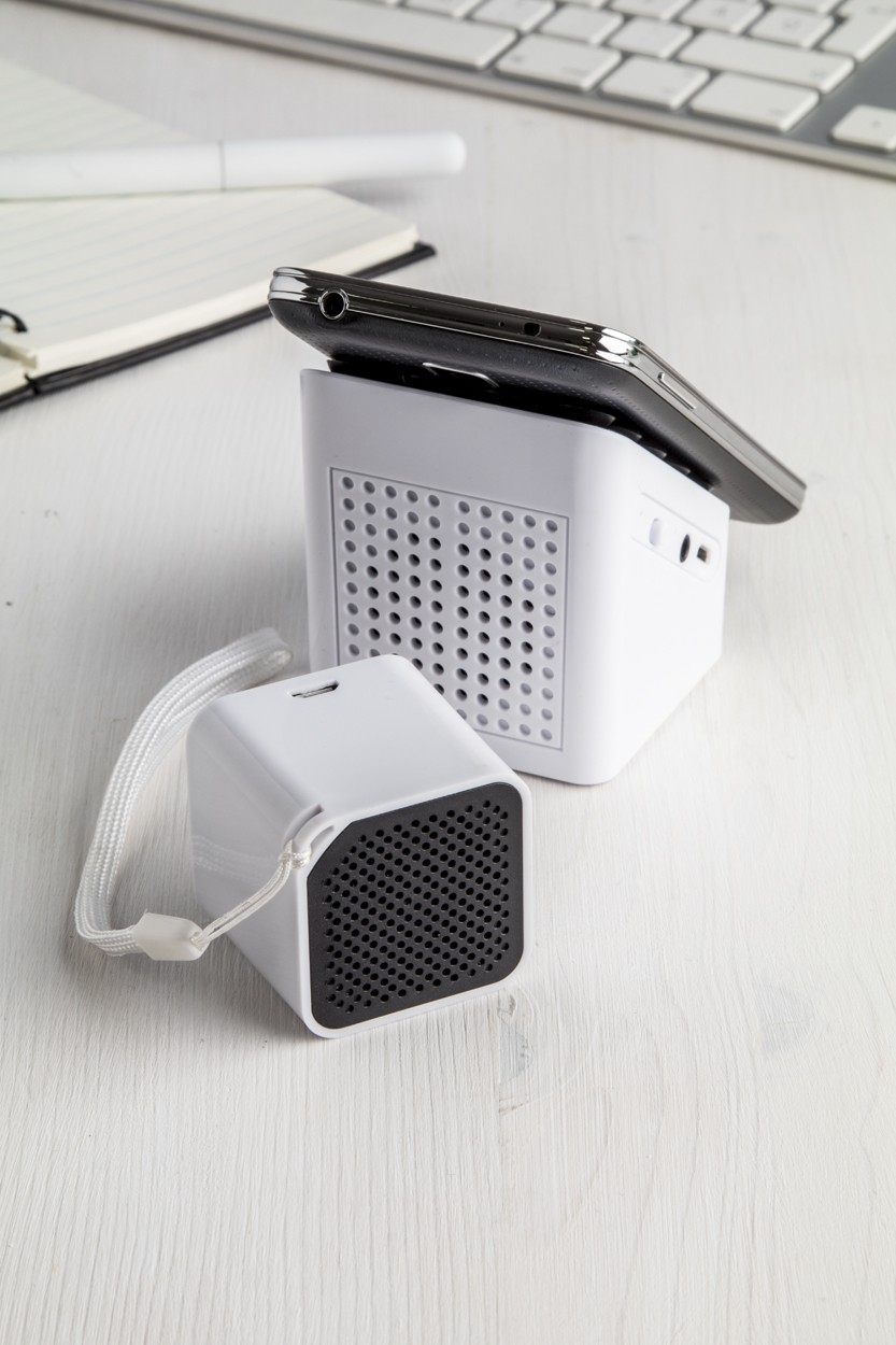 Difuzor cu Bluetooth, carcasă din plastic, ventuze pentru telefon mobil. Cu baterie reîncărcabilă încorporată. Cablu de încărcare USB inclus.