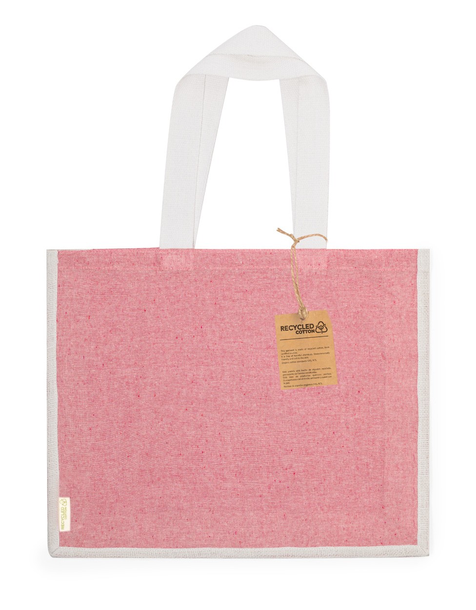 Geantă de cumpărături, din bumbac reciclat și iută, cu mânere lungi și burduf, 140 g/m².
