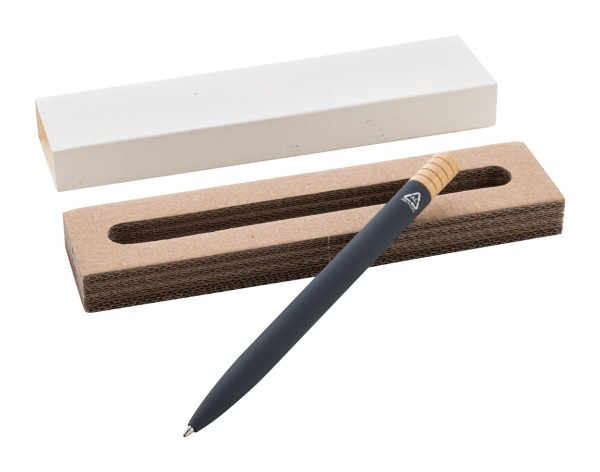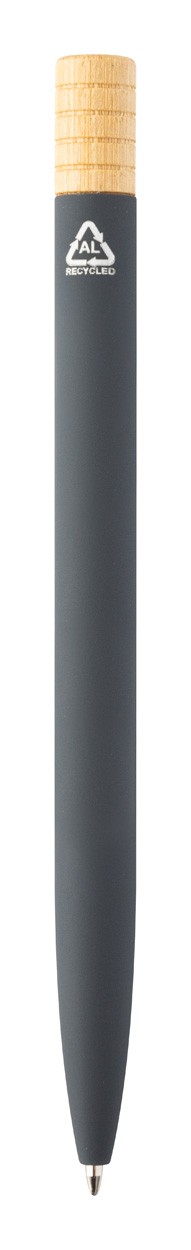 Pix din aluminiu reciclat, cu clemă cu finisaj gunmetal și vârf din bambus. Cu mină albastră. În cutie de hârtie kraft.