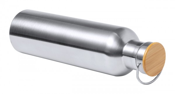 Termos din oțel inoxidabil, cu perete dublu, cu capac de transport din bambus. 1000 ml. Izolația menține băuturile calde timp de 12 și reci timp de 48 de ore.