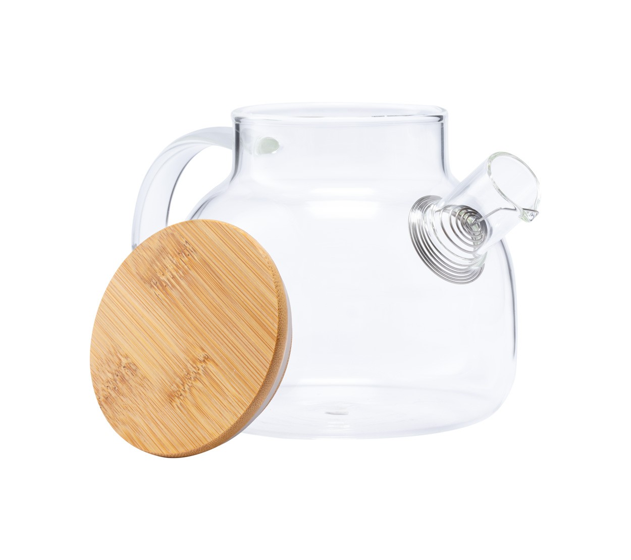 Ceainic, din sticlă borosilicată, cu capac din bambus și strecurătoare de ceai din inox, 1000 ml