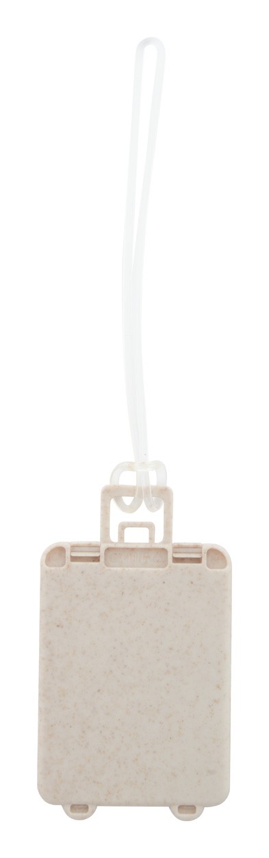 Etichetă ecologică de bagaj, din plastic din paie de grâu, în formă de geantă troler, cu curea elastică.