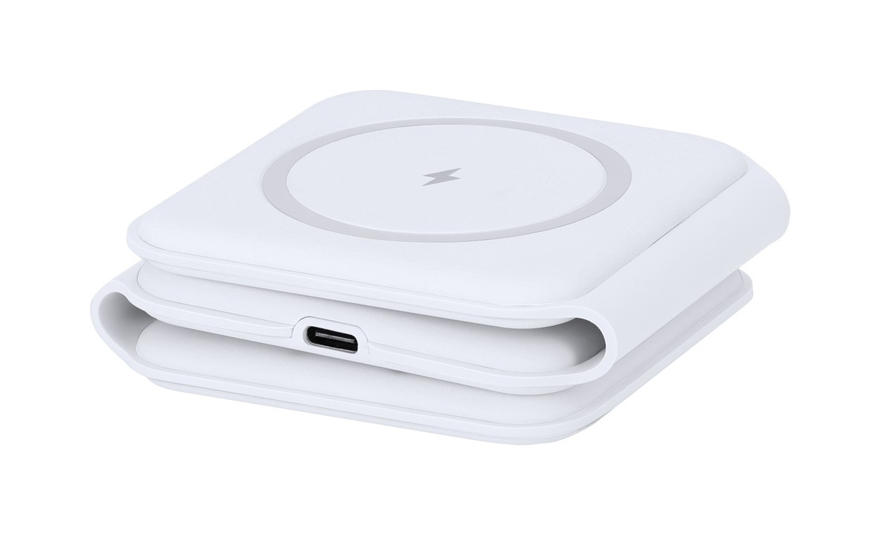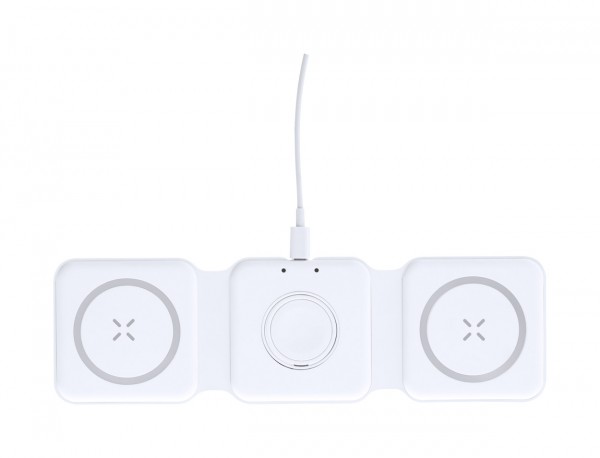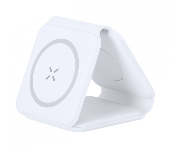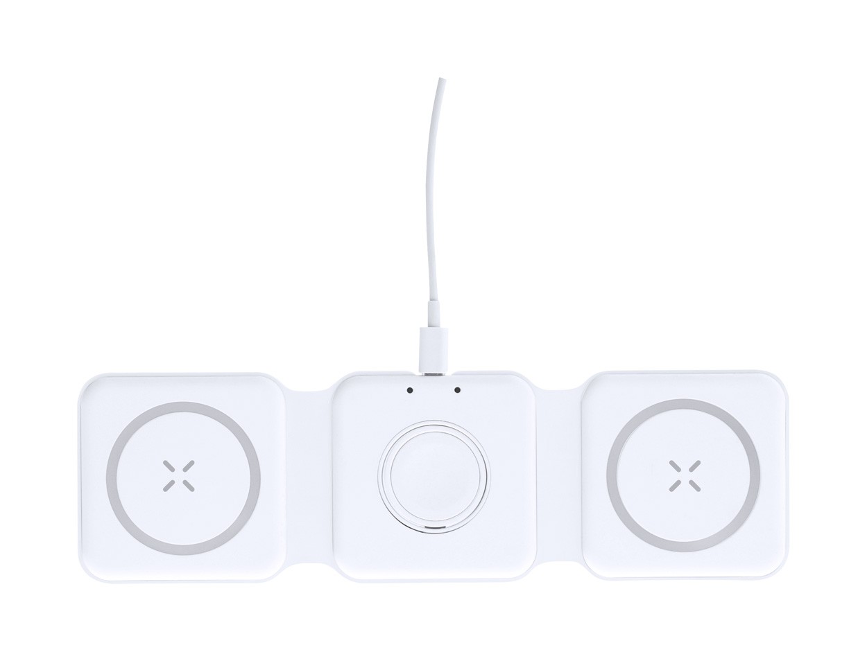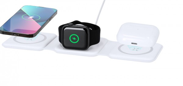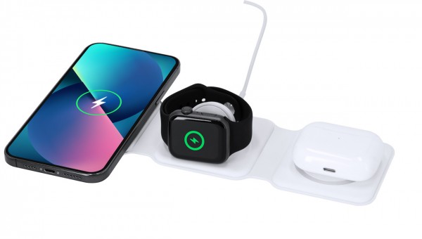 Stație de încărcare rapidă wireless magnetică, din plastic ABS (15W) cu 3 suprafețe de încărcare wireless pentru încărcarea simultană a unui telefon mobil, căști și un ceas inteligent. Inclusiv cablu de încărcare USB-C.