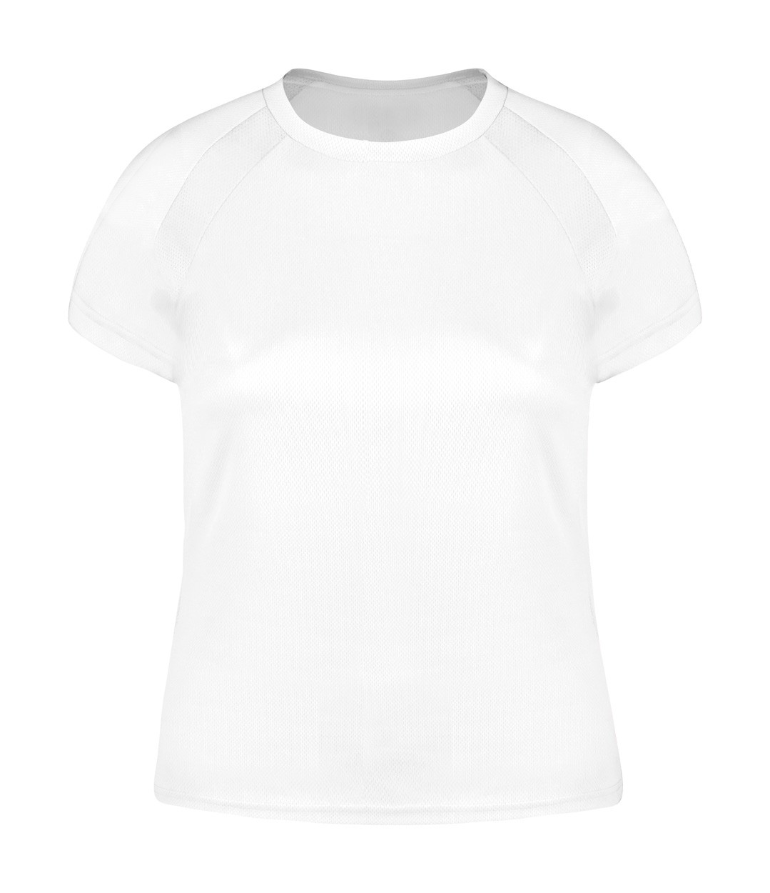 Tricou sport, de damă, 100% poliester, respirabil, cu gât rotund, 135 g/m².