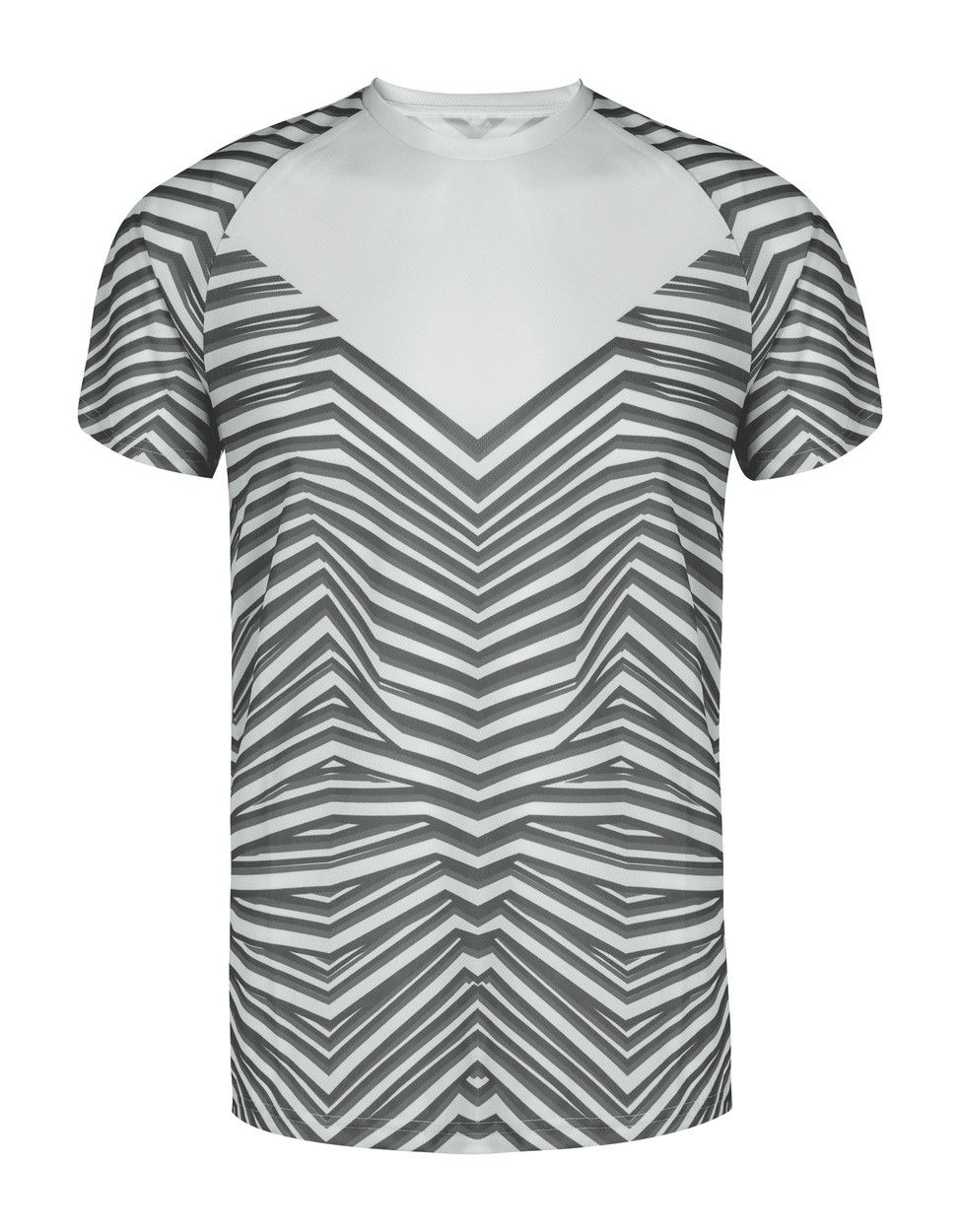 Tricou sport, 100% poliester, respirabil, cu design în dungi. 135 g/m².