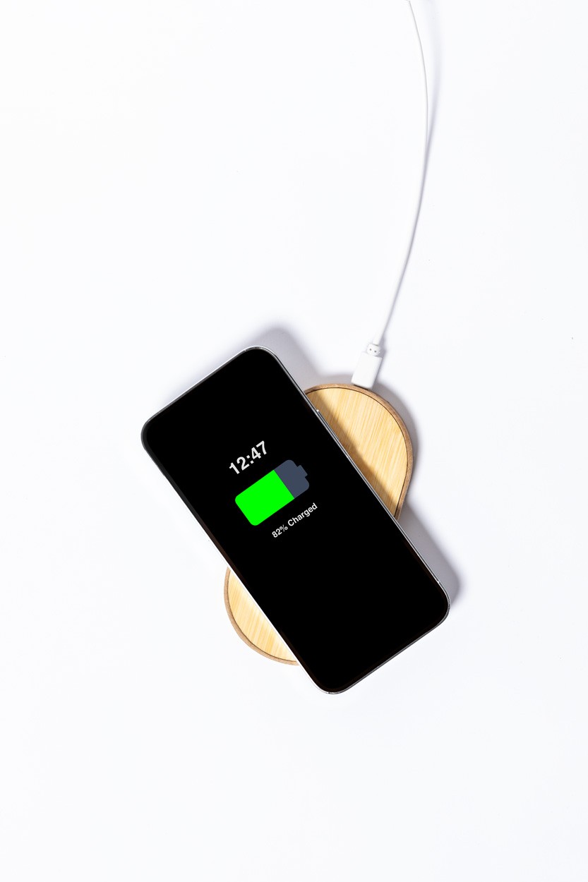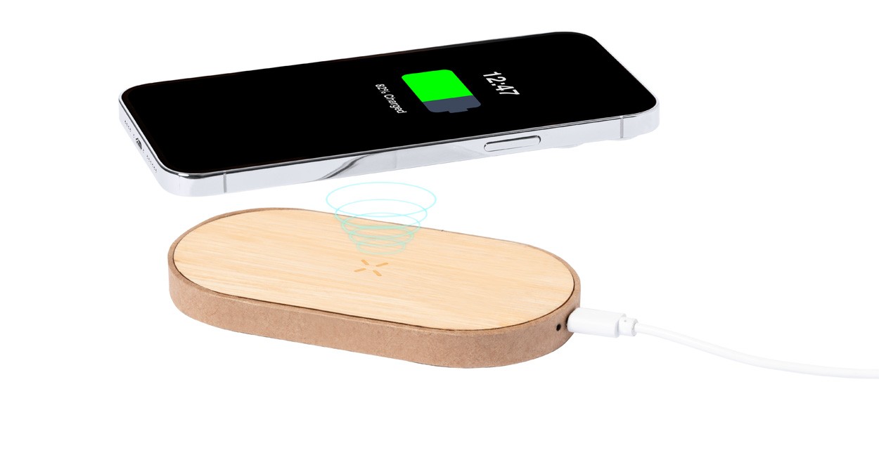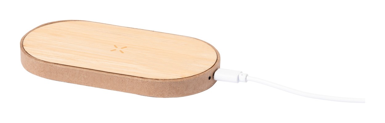 Încărcător rapid fără fir (10W), în carcasă din carton reciclat, acoperit cu bambus. Inclusiv cablu de încărcare USB.