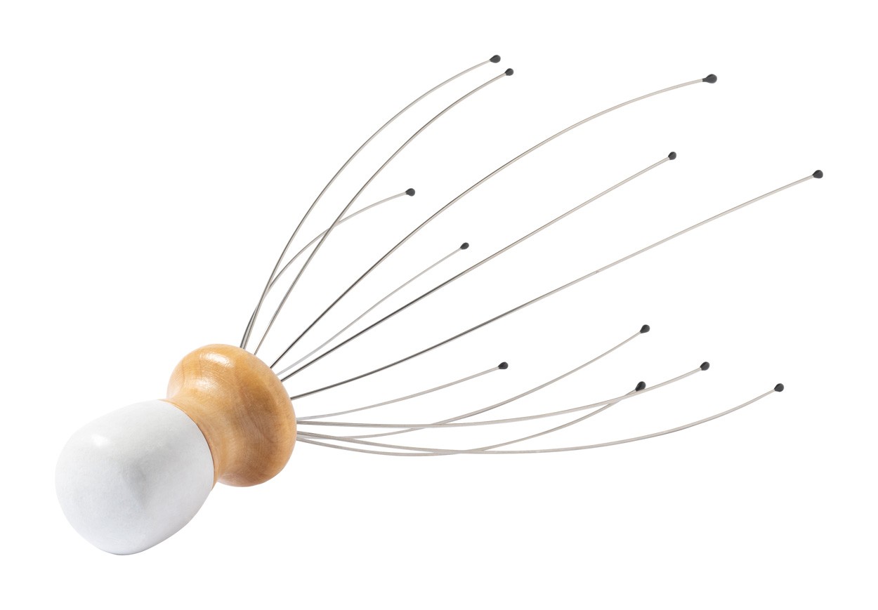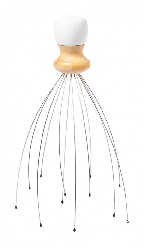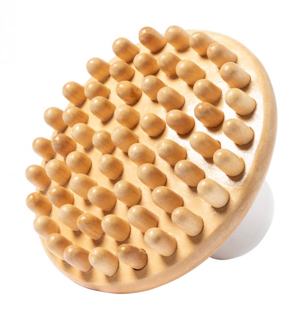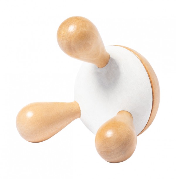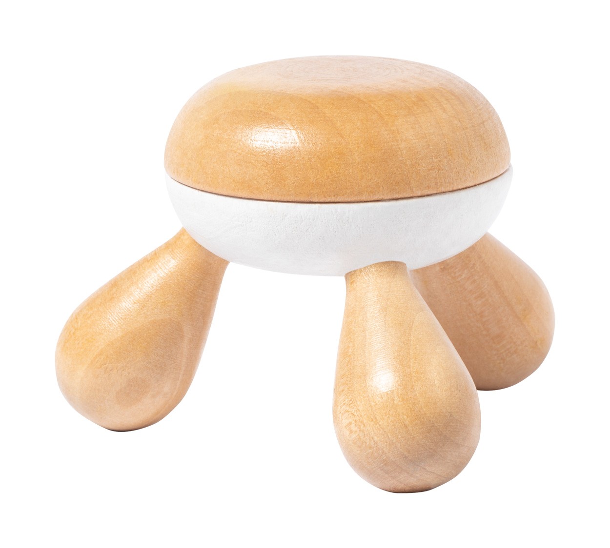 Set pentru masaj, din lemn, 4 buc, în husă nețesată, cu șnur. Include 1 aparat de masaj pentru cap, 1 cilindru pentru picior, 1 accesoriu cu trei picioare, de masaj pentru spate, în formă de ciupercă.
