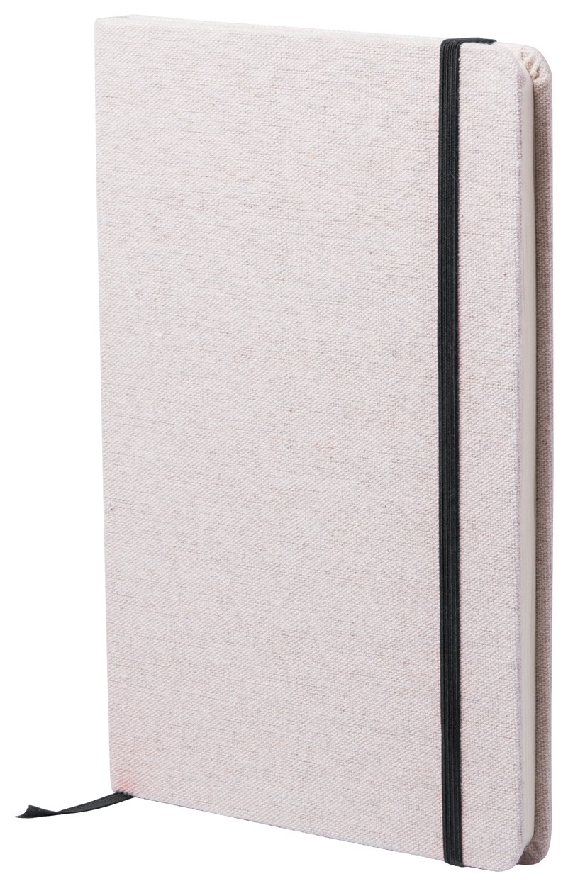 Carnețel cu copertă din bumbac, 80 file, semn de carte colorat, curea din cauciuc.