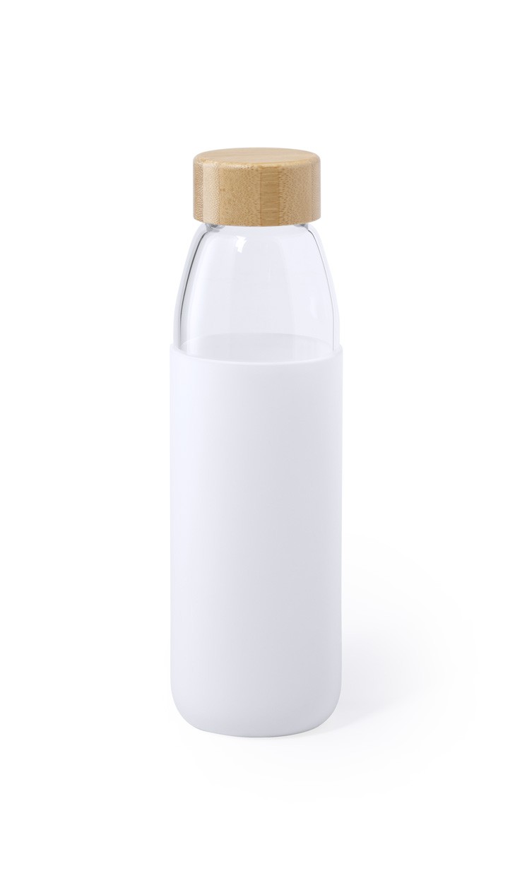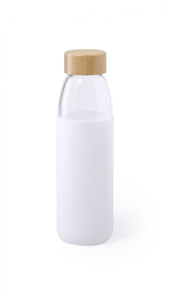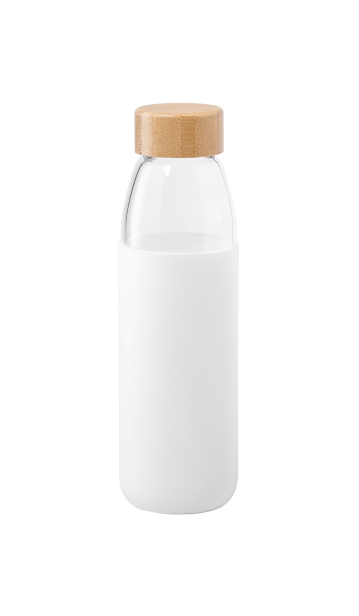 Sticlă sport cu husă din silicon și capac de bambus, 540 ml. Nu este potrivit pentru băuturi carbogazoase.