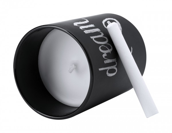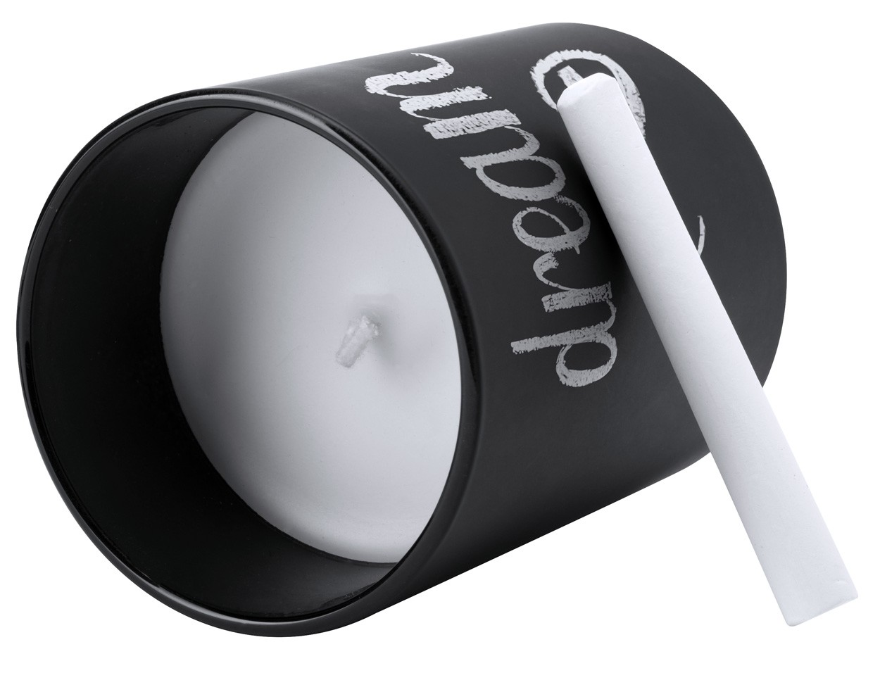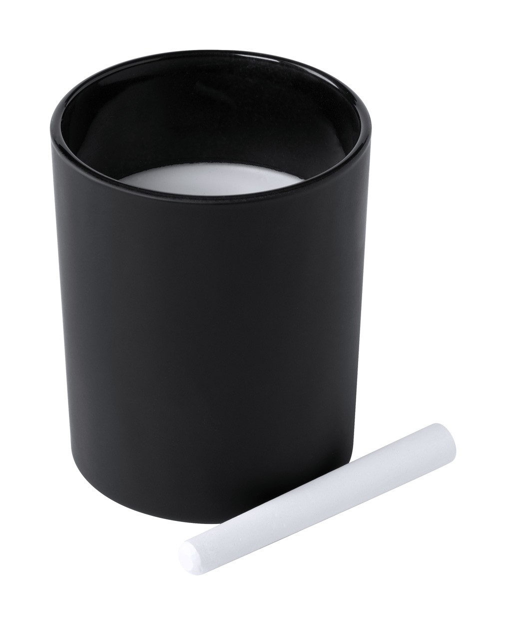 Lumânare parfumată vanilie, în pahar din sticlă. În cutie de hârtie cu o cretă.