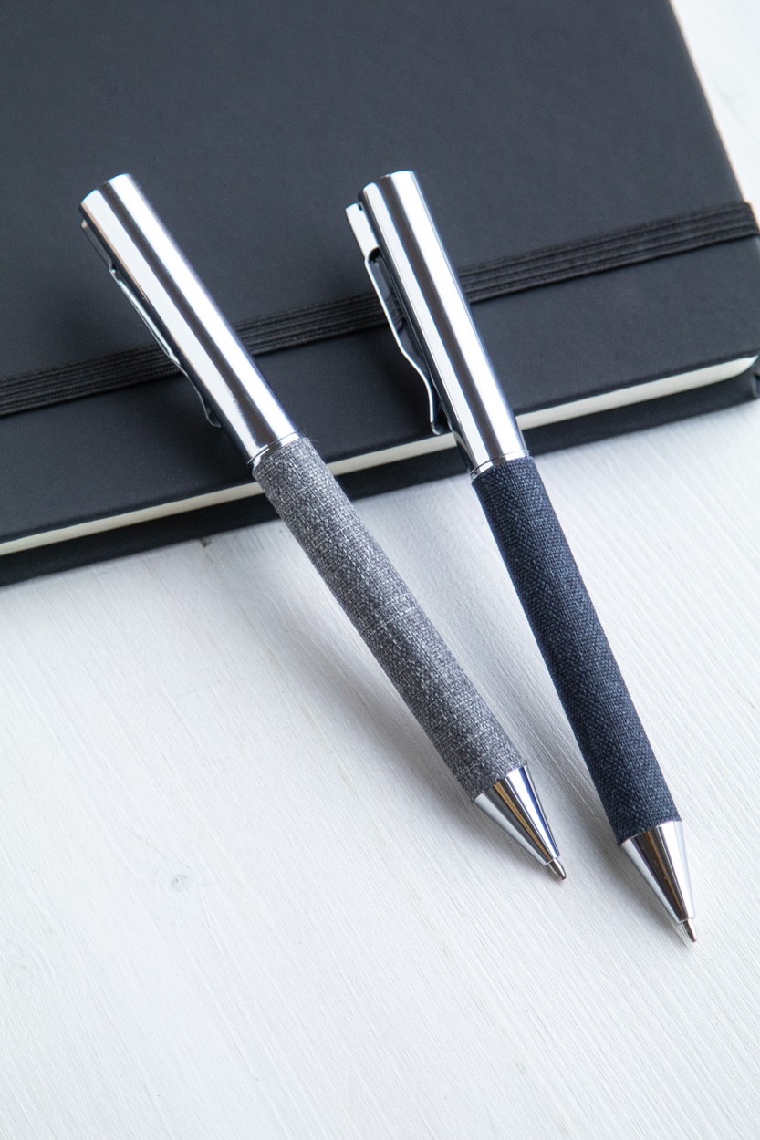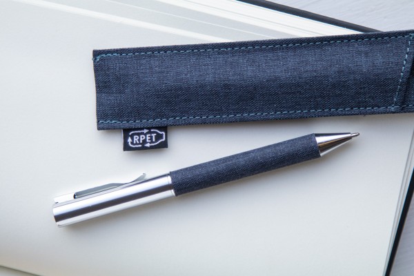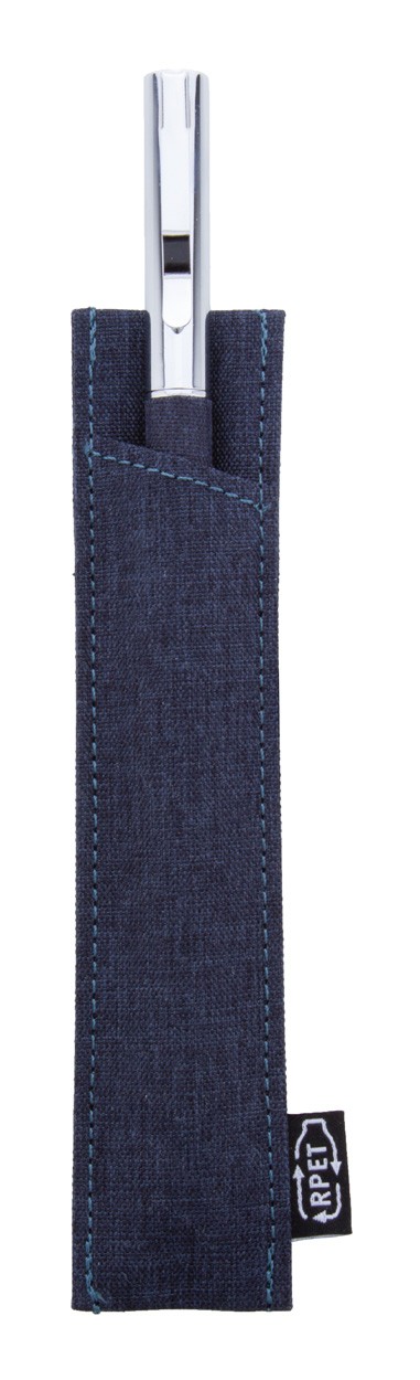 Pix cu bilă, cu deschidere prin răsucire, din metal, cu corp acoperit cu poliester RPET. În carcasă din poliester RPET asortată. Cu mină albastră.