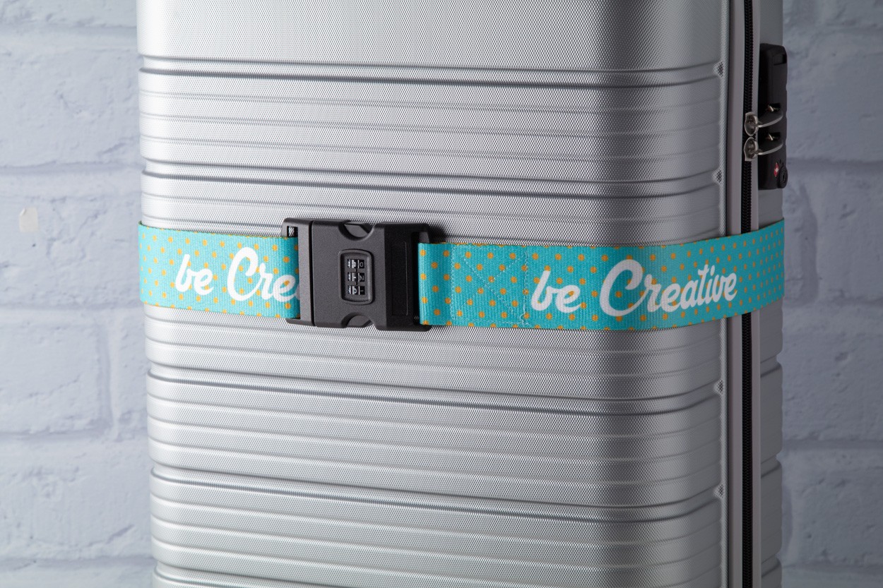 Curea de siguranță ajustabilă pentru bagaje, din poliester, blocare cu cifru din 3 cifre. Cu sublimare pe ambele părți. Cantitate minimă de comandă: 50 buc.