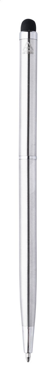 Pix din oțel inoxidabil reciclat, cu buton pentru ecran tactil, cu părți cromate. Cu mină albastră.